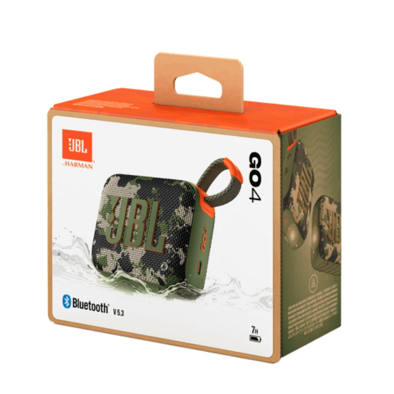 JBL Go 4 Portable Bluetooth Speaker – Compact, powerful, and ready for any adventure. Features 4.2W JBL Pro Sound, IP67 waterproof/dustproof rating, Bluetooth 5.3, and up to 7 hours of playtime. Lightweight and perfect for on-the-go use.