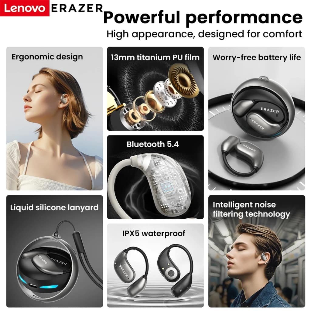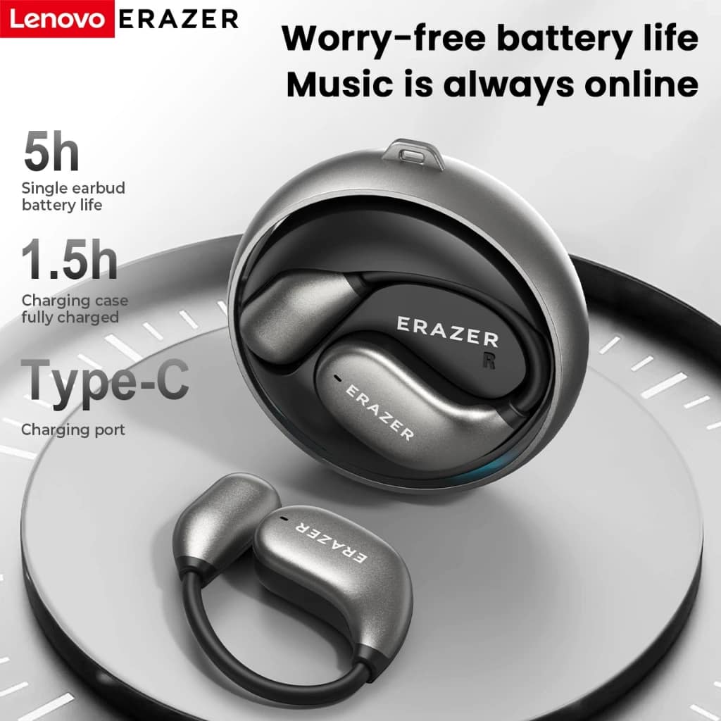 Lenovo ERAZER XF25 Bluetooth 5.4 TWS Earbuds with 5–6h playtime, 38h with case, HD mic, waterproof IPX5, and smart touch controls. Compact, powerful, and 100% genuine with 12-month warranty.